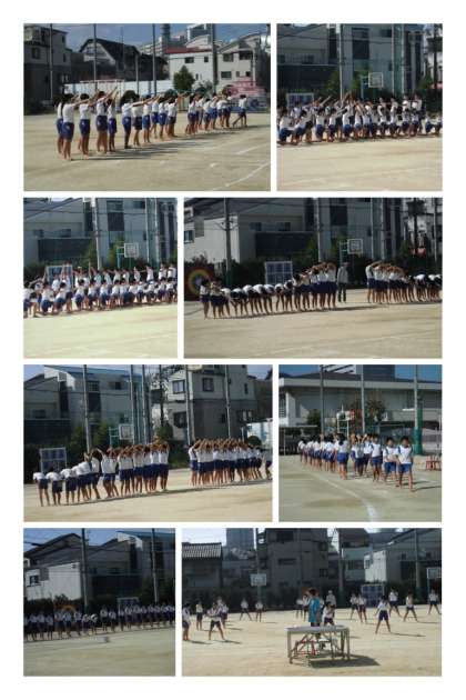 9月25日(月)、高学年の組立体操の運動場での練習が始まりました。