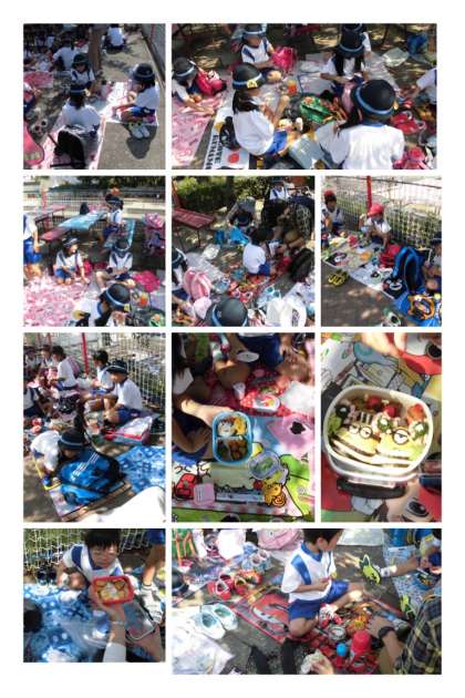 給食の時間よりも早い11時過ぎから、お弁当を食べ始めました。みんな、お家の人が作ってくれたお弁当を見せ合いながら、美味しそうにパクパクと食べていました!!