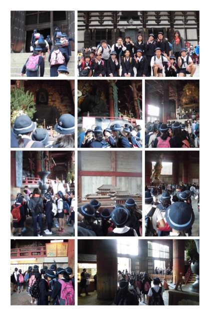 南大門の仁王像を見学し、東大寺の中へと進みました。大仏殿の前で写真を撮り、いよいよ大仏様とご対面しました。指の形の意味などを先生に説明してもらいながら、見学しました!!