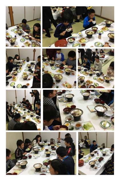 開舎式を行い、いよいよ待ちに待った夕食です。食べきれないほどのご馳走がテーブルに並びました!!