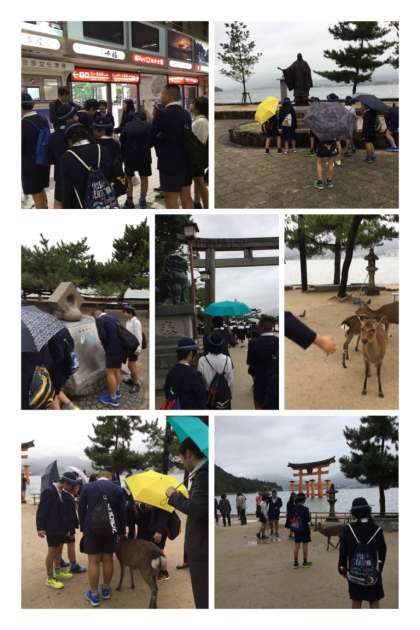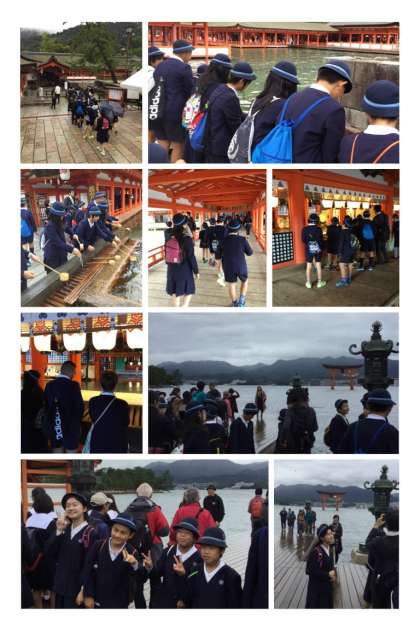 宮島に上陸し、厳島神社を見学しています!!今、満潮なので、絵葉書のような海の中の鳥居が見えています!!