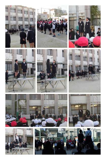 11月16日(木)、児童朝会で代表委員会からあいさつキャンペーンの説明がありました。