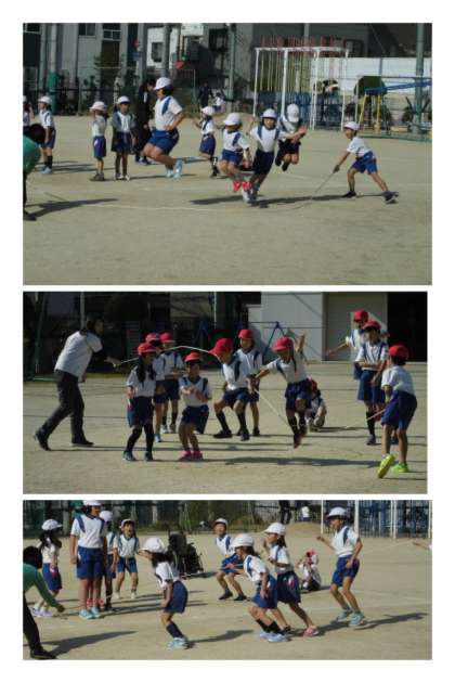 11月17日(金)、1年生が体育の授業で縄跳びをしていました。「難しい、難しい!」と言いながら頑張っている児童や100回続けて跳んで見せてくれる児童もいました。