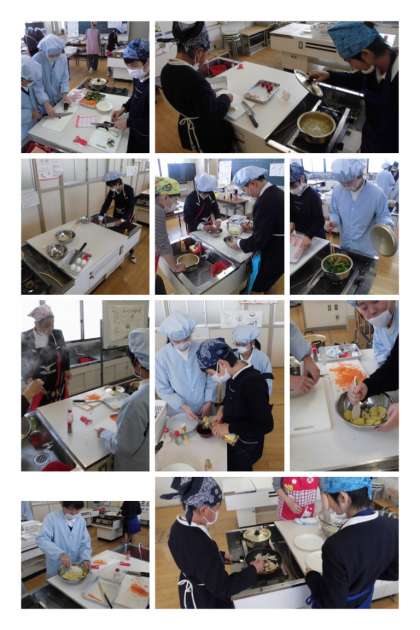 12月7日(木)、6年生の調理実習の様子です。「身近な食材で料理を作ろう」と、冷蔵庫にある野菜や玉子、ベーコンなどを使って、料理作りをしました。
