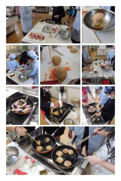じゃがいもを使ったジャーマンポテトやポテトハンバーグ、野菜のベーコン巻き、玉子のオムレツなどを作りました。少し隠し味としてチーズやツナ缶を使い、とても美味しく出来上がりました!!