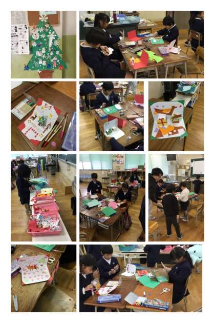 12月13日(水)、2年生がクリスマスカードを作っていました。
