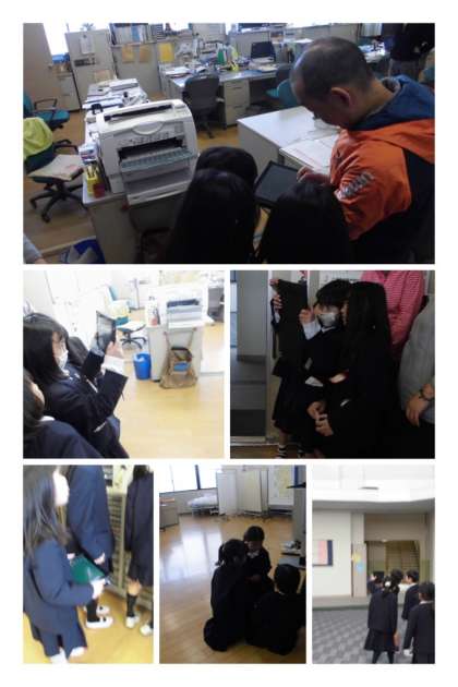 2月6日(火)、1年生がタブレット端末を使って、新入生に学校を紹介する写真を撮っていました。