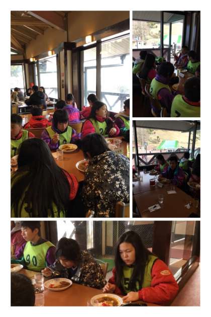 腹ごしらえをして、午後のレッスンが始まりました。目標は、リフトに乗って、上から滑ることでしたが、残念ながら時間切れでした。