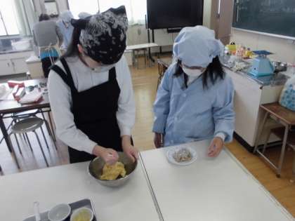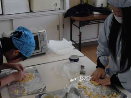 小学校生活最後の調理実習を行いました。今日のめあては「感謝の気持ちを伝えよう」です。くるみやドライフルーツ、チョコなどをトッピングしたクッキーを焼き、一つずつラッピングして、お世話になった学校の教職員の方々に届けました。