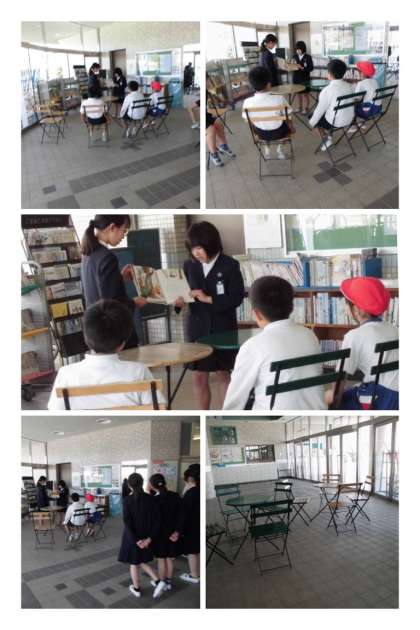 5月9日(水)、今日は6年生の図書委員がエントランスホールで絵本の読み聞かせをしてくれました。1・2年生が体育の着替えで来れなく聞き手は少なかったのですが、感情をこめて上手に読んでくれました。