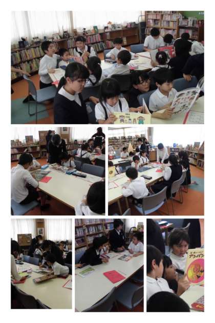 5月17日(木)、1年生と6年生が合同で図書の時間をしていました。
