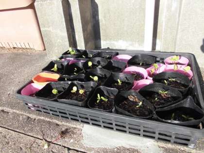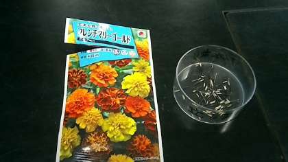 3年生が理科の学習でマリーゴールドとホウセンカの種を蒔いていました。