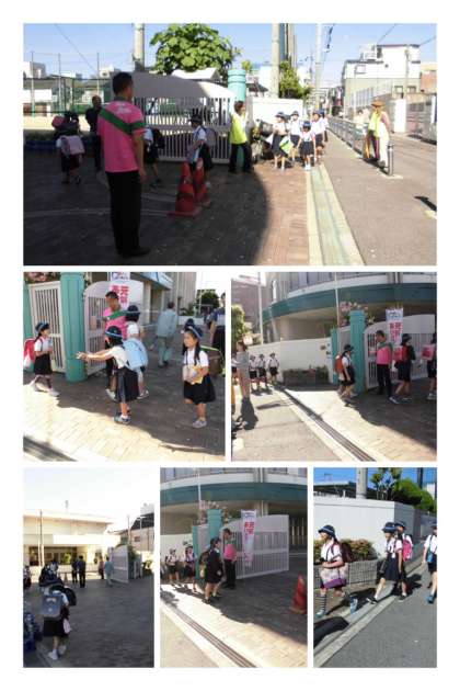 午前8時10分、集団登校してくる子どもたち一人ひとりに大きな声で「おはようございます」とあいさつしてくださると、子どもたちも大きな声であいさつを返していました。見守り隊のみなさんも笑顔であいさつしてくださっていました!!