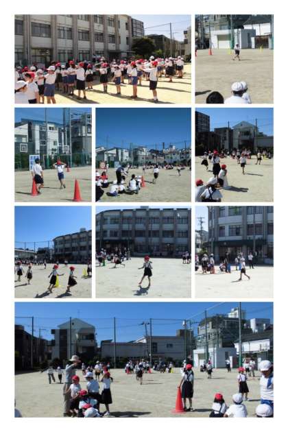 最初に集会委員が、説明と見本してリレーが始まりました。子どもたちは封筒に入っているおみくじに書かれた歩き方をして、次の人につなぎます。