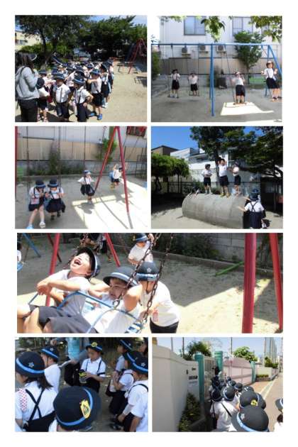 学校を出て最初に三西商店街の方に向かい、アンパンマン公園で休憩しました。遊具で遊ぶこともできました!!公園をあとにして、通学路を確認して学校へ戻りました!!