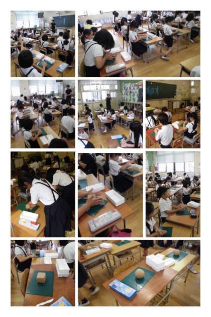 6月12日(火)、2年生が粘土でボールやサイコロなどのいろんな形を作っていました。しっかりと粘土板に押さえて丸めたり、角を作ったりして工夫していました。できあがりをみんなで見合い、感想を発表していました!!