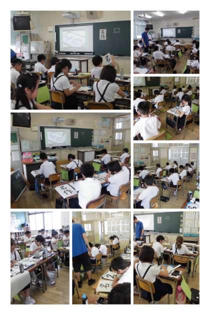 6月12日(火)、4年生の習字の授業の様子です。「名作」という字を書いていました。