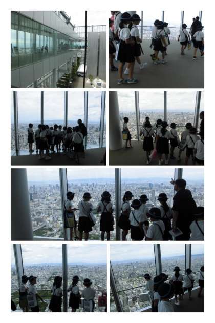 60階からの眺めは絶景で、梅田の高層ビル群が小さく低く見えました!!北・南・西・東の順番で見学し、金剛・生駒の山々から大阪湾、その向こうには、六甲山系も見ることができました!!