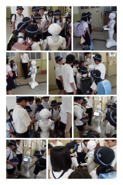 7月6日(金)、今日は、朝からロボットのペッパー君が来てくれました。登校した子どもたちはすぐにペッパー君のところに集まってきました。「おはよう!」と話しかけると「おはよう!」と答え、また、一言。楽しくて子どもたちは、ペッパー君のそばを離れようとはしません。頭や手も触ってうれしそうでした。