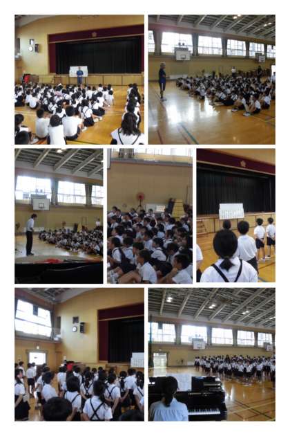 最初に、校長先生から、「1学期でどれだけ成長しましたか?」と子どもたちに問いかけがあると、まず6年生が手をあげました。「クロールで25メートル泳げるようになりました。クラスの団結力が強くなりました。」と、答えてくれました。続いて5年生・4年生が発表してくれ、最後の1年生は、「字が読めるようになりました!」と胸を張りました。みんなが立派に成長してくれていることが確認でき、「もっと良い学校」になっていくと確信できました。