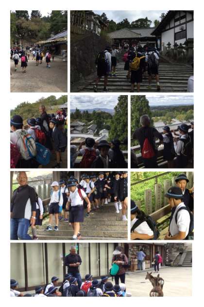 二月堂を回って春日大社に行く途中、鹿にせんべいをあげました。お弁当は飛火野で食べました!!