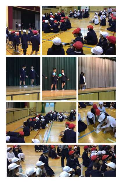 12月6日(木)、今日の児童集会は、集会委員が「どこが変わったのかなぁ?」のゲームをしてくれました。集会委員がとったポーズが幕が閉まった間にどう変わったのかを答えるゲームです。