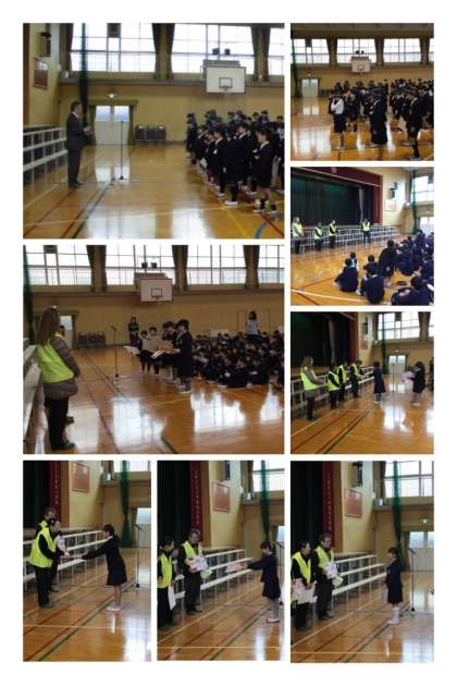 3月4日(月)、児童朝会で「見守り隊感謝の集い」を実施しました。見守り隊の方々は、毎朝、子どもたちに優しく声をかけ、学校まで安全に送ってくださっています。子どもたち一人ひとりの名まえを覚え、今日は誰が来ていないかまで把握してくださっています。