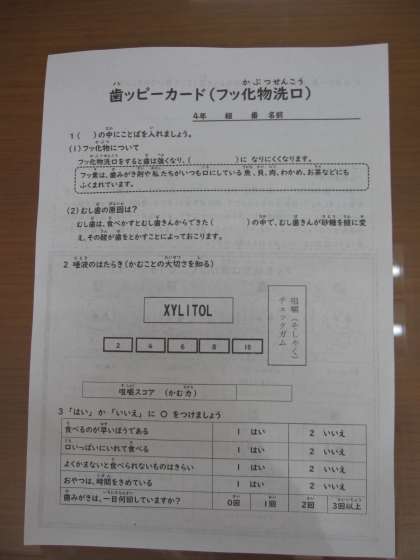 歯の大切さ・虫歯の原因・かむことの大切さ・歯みがき・フッ化物などについての学習をしました。