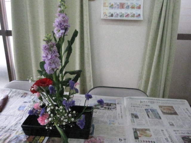 剣山をつかうので、おそるおそる花を挿す様子も見られました。みんな自分なりに生けることができました。