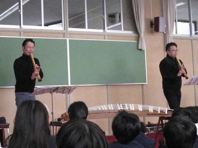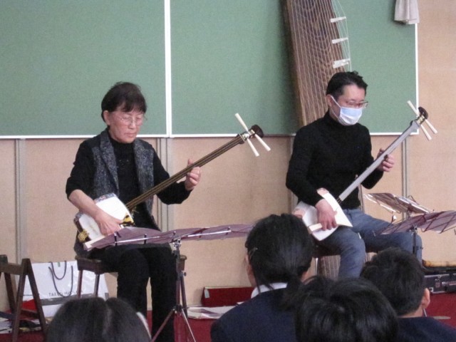 音楽の教科書にも出てくる楽器を身近で見たり、曲を聞かせていただいたりしました。