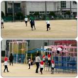 昼休みに,元気で運動場で遊んでいました。 遊具を使って、ボールで、先生も一緒に...