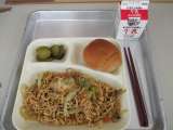 オイスターソース焼きそば きゅうりの中華あえ パン(1/2) 牛乳