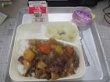 ビーフカレーライス(米粉) 野菜のピクルス ぶどうゼリー ごはん 牛乳