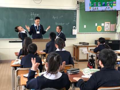 4月17日(水)6年2組では外国語活動の時間、ラファエル先生と英語の「月」の名前を使ったゲームをしていました。男子対女子の対戦で、女子がリードしているようでしたが、最終的にどちらが勝ったのでしょう?