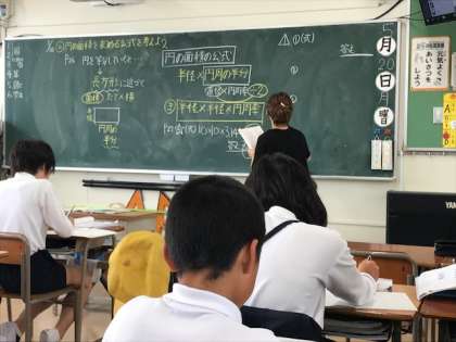 5月20日(月)4時間目、6年1組は算数で円の面積の学習をしていました。