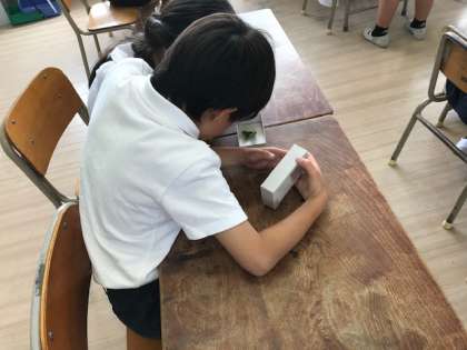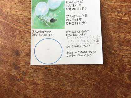 5月21日(火)1時間目、3年生は昨日生まれたばかりのカイコを観察しました。まだ1ミリメートルぐらいで「小さい」や「かわいい」等の感想がありました.これから上手に育てられるでしょうか?