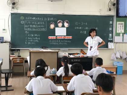 6月4日(火)2時間目、3年2組は算数の研究授業でした。12個のクッキーを3人で同じ数ずつ分けると何個ずつになるかを考えました。