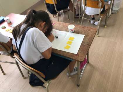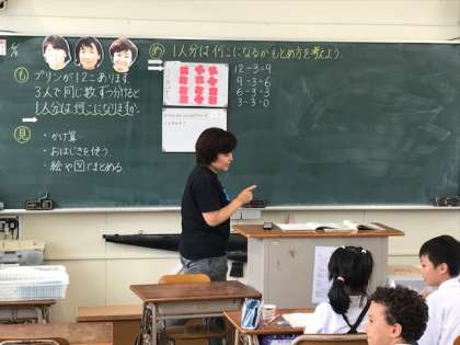 6月4日(火)4時間目、3年1組は研究授業で算数をしました。2組と同じ学習でしたが、1組はクッキーではなくプリンの問題でした。