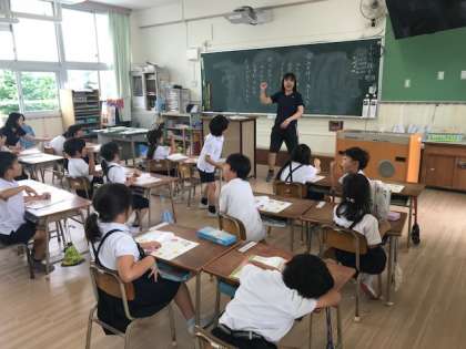 6月10日(月)4時間目、1年1組は音楽をしていました。楽しそうな「ジャンケンポーンでグーチョキ、パー」の歌声が聞こえてきました。