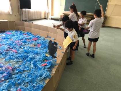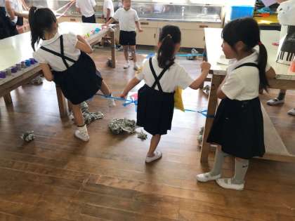 お店まわりも、たてわり班で行います。高学年が低学年の手をつないでまわっている姿はほほえましいものがあります。