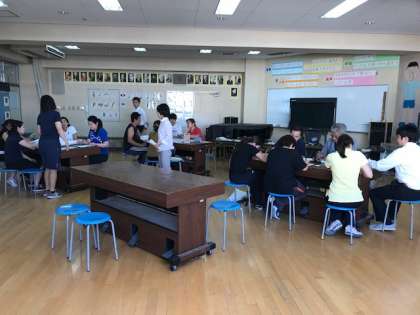 研究討議会 研究授業を見て、授業を振り返って指導を受けます