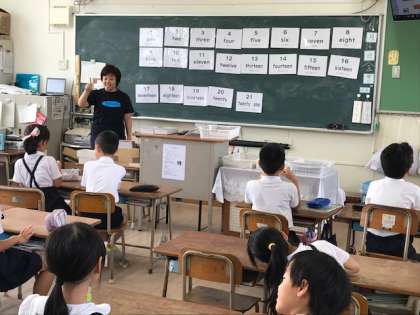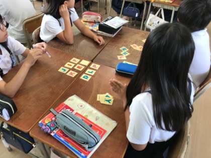 6月14日(金)朝のイングリッシュタイムで3年1組は21までの数を英語で言うゲームをしました。5年1組はアルファベットを使ってゲームをしていました。