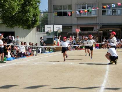 やった!1着だ!ゴールテープを切るたくさんの笑顔に出会えた3年生の個人走でした。