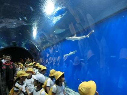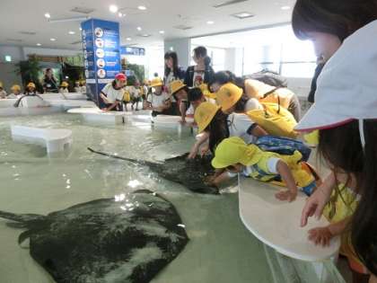秋の遠足のトップを切って、2年生が海遊館への遠足に出かけました。子どもたちは、海や水辺のさまざまな生き物を見て興味津々の眼差しでした。生き物とのふれあいコーナーでは、サメやエイの背中に手で触れてその感触の違いを楽しんでいました。