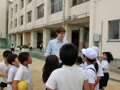 C−NETとして、5・6年生の外国語活動のためにスコット・タルボット先生が来てくださいました。さっそく、子どもたちは、休み時間にスコット先生を運動場で見かけて話しかけていました。
