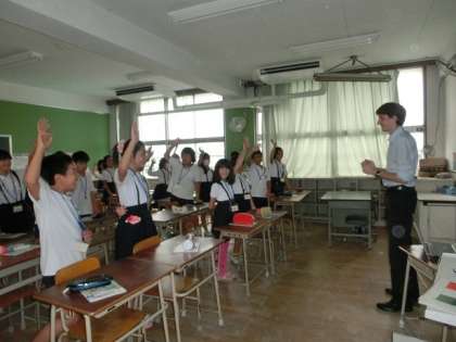 また、6年生は外国語活動で、クラスごとにスコット先生との出会いのひと時を楽しんでいました。