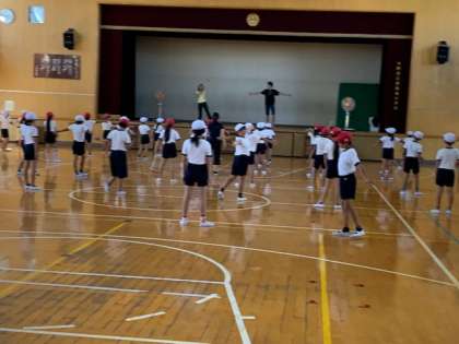9月3日(火)5時間目、4年生は体育館でダンスの練習をしていました。