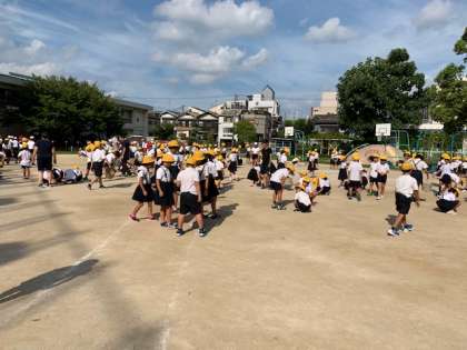 全員で運動場の石拾いをしました。