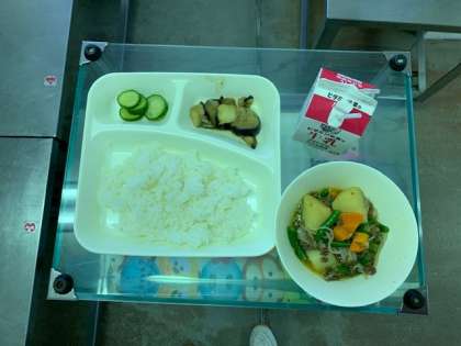 9月4日(水)肉じゃが、焼なすのみそだれかけ、あっさりきゅうり、ごはん、牛乳