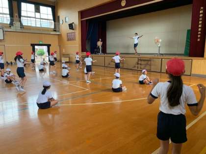 9月5日(木)1時間目、4年生は体育館でダンスの練習をしていました。速くて難しいステップに悪戦苦闘しているようでした。でも動きが楽しいのか笑顔の子もいました。